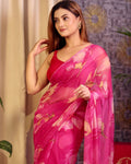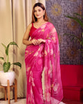 Pure soft georgette silk saree with beautiful digital prints flower And hand Cutdana+moti work heavy outing border in all over saree ,paired with blouse